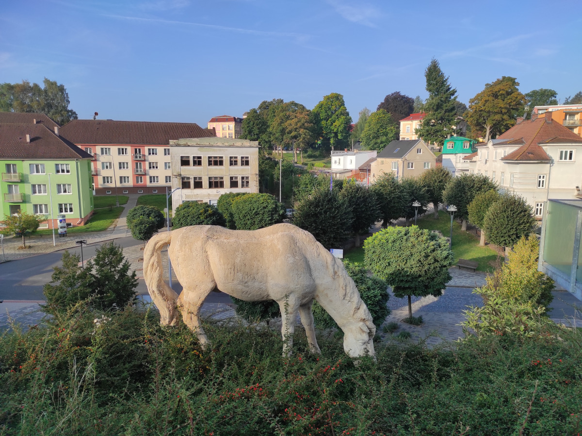 Na městském úřadě v Hranicích mi pan starosta Daniel Mašlár a paní místostarostka Pavla Hošková představili dění ve městě a okolí a krátce jsme se pobavili o chystané rekonstrukci nyní neobývané městské budovy, která se nachází přímo v centru města. Po rekonstrukci zde má město zájem vybudovat obecní kavárnu, čítárnu, výstavní prostory, infocentrum a především prostory pro setkávání. Bylo mi umožněno nahlédnout do projektové dokumentace a musím zmínit, že jde o zajímavý záměr. Projekt Knihovna a muzeíčko Hranice též získal 3. místo v soutěži Stavby Karlovarského kraje v roce 2021. Dalším připravovaným projektem, který je již v realizaci je zázemí pro sportovce u fotbalového hřiště v přilehlé místní části Studánka. Hovořili jsme také o problematice dostupnosti lékařské péče, o autobusové a vlakové dopravě v návaznosti na dopravu do krajského města. Velmi zajímavou informací je to, že ve městě začne firma GasNet, která provozuje místní plynovody, přimíchávat vodík k zemnímu plynu. Letos proběhla kontrola odběrných zařízení, kontrola a výměna některých spotřebičů, následně se začne testovat vlastní provoz. Vodík se tu bude přímo vyrábět v Pastvinách u Hranic. Vypadá to, že město Hranice bude jedním z prvních měst v republice, které půjde touto cestou.