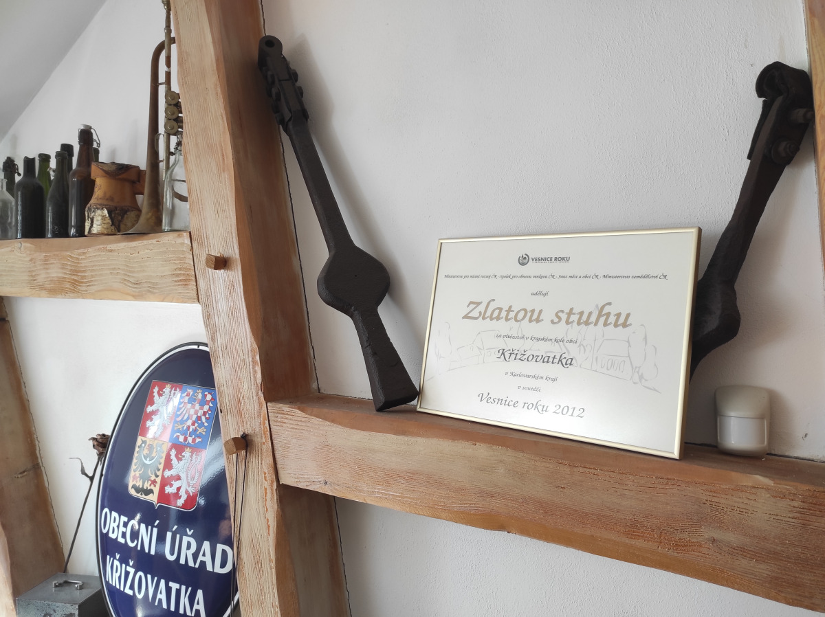 Třetí a poslední zastávka tohoto dne byla v obci Křižovatka. Pan starosta Jan Strachota mne informoval o dění v obci a například i o problémech s výstavou v malých obcích, kde na obecních úřadech často nejsou žádní proškolení úředníci a všechny úřední záležitosti včetně případných žádostí o dotace si musí starostové či starostky obstarávat sami. Z historického pohledu lze vznik obce Křižovatka datovat do roku 1199. První písemná zmínka o obci je však z roku 1322. Okolo roku 1213 byl v obci postaven kostel, který patří mezi nejstarší na Chebsku. Největšího rozmachu dosáhla obec ve 30-tých letech 20. století, kdy měla okolo 620 obyvatel. Po roce 1945 však v obci zůstalo jen 238 obyvatel a u této hranice se drží počet obyvatel do dnešní doby, kdy zde žije asi 260 obyvatel. Obec získala Zlatou stuhu v soutěži Vesnice roku 2012 za vítězství v krajském kole v Karlovarském kraji.